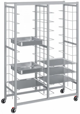 Мобильная тележка Polair KE14.20.57.85D под EN подносы высотой 1400 мм применяется для сбора подносов с грязной посудой в залах предприятий общепита с последующей транспортировкой их в моечный цех.