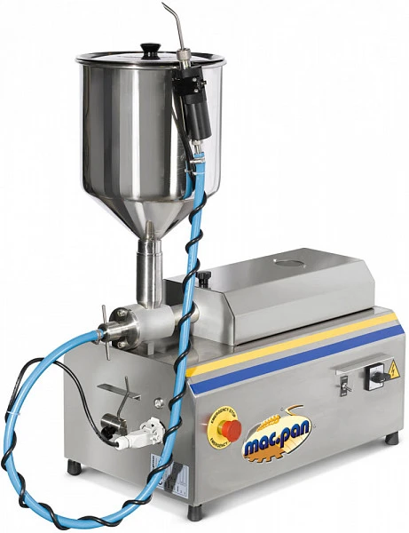 Шприц-дозатор MAC.PAN MDE/CIOC используется на предприятиях пищевой промышленности и общественного питания, в пекарнях и кондитерских для наполнения кондитерских изделий начинкой из шоколада, меда, джема и различного вида кремов, кроме масляного крема и взбитых сливок.