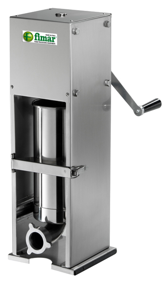 Процесс изготовления колбасы производится путём выдавливанием фарша из шприца в специальную оболочку для колбасы. Подачей фарша в оболочку повар управляет с помощью удобной и эргономичной ручки-рычага. Объём колбасного шприца Fimar - 7 литров - идеален для использования на кухнях ресторанов, кафе и других предприятий общепита.