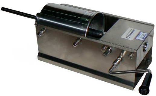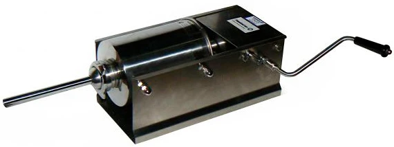 Принцип работы этих механизмов достаточно прост: в цилиндр аппарата помещают заранее приготовленный фарш, специальный поршень проталкивает продукт к воронке, на которой надета оболочка.