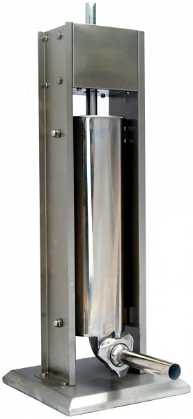 Принцип работы этих механизмов достаточно прост: в цилиндр аппарата помещают заранее приготовленный фарш, специальный поршень проталкивает продукт к воронке, на которой надета оболочка.