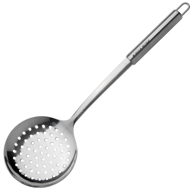 Шумовка Luxstahl 370 мм [NH9876] используется на предприятиях общественного питания и торговли для извлечения приготовленных продуктов из кипятка, бульона, подливы и других жидкостей.