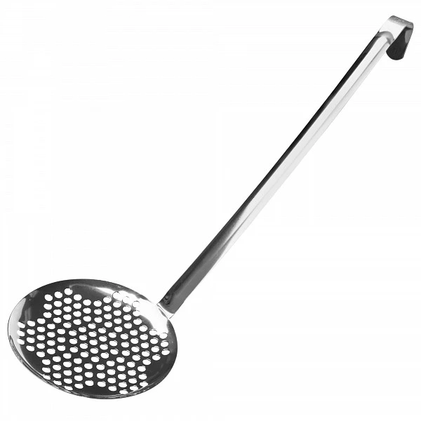 Шумовка Luxstahl 400 мм используется на предприятиях общественного питания и торговли для извлечения приготовленных продуктов из кипятка, бульона, подливы и других жидкостей.
