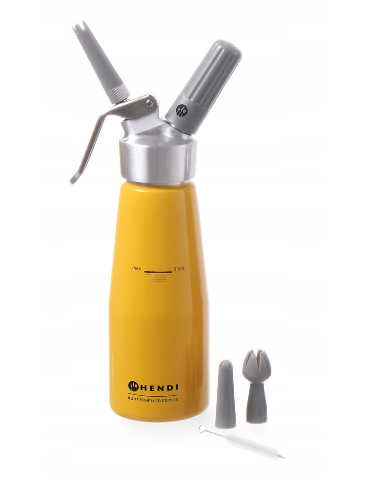 Сифон для приготовления взбитых сливок Hendi 975855 предназначен для создания взбитых сливок. Подходит как для профессиональной кухни, так и для домашнего использования. Благодаря сифону HENDI, сливки получаются легкими и воздушными. Это отличная вкусовая добавка к кофе, а также декоративный элемент, способный украсить множество сладостей.