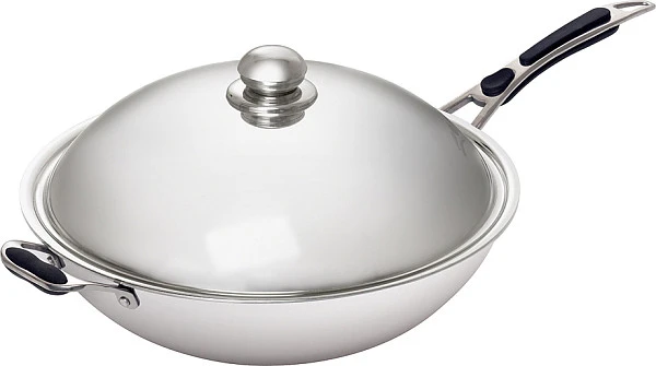 Модель оснащена ненагревающимися ручками, подходит для индукционных плит и выполнена из нержавеющей стали.