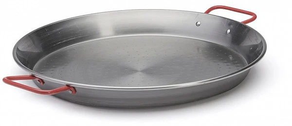 Сковорода для паэльи De Buyer 5026.46 с 2-мя красными ручками, на 12 порций используется на предприятиях общественного питания и торговли, в частных домах и квартирах.