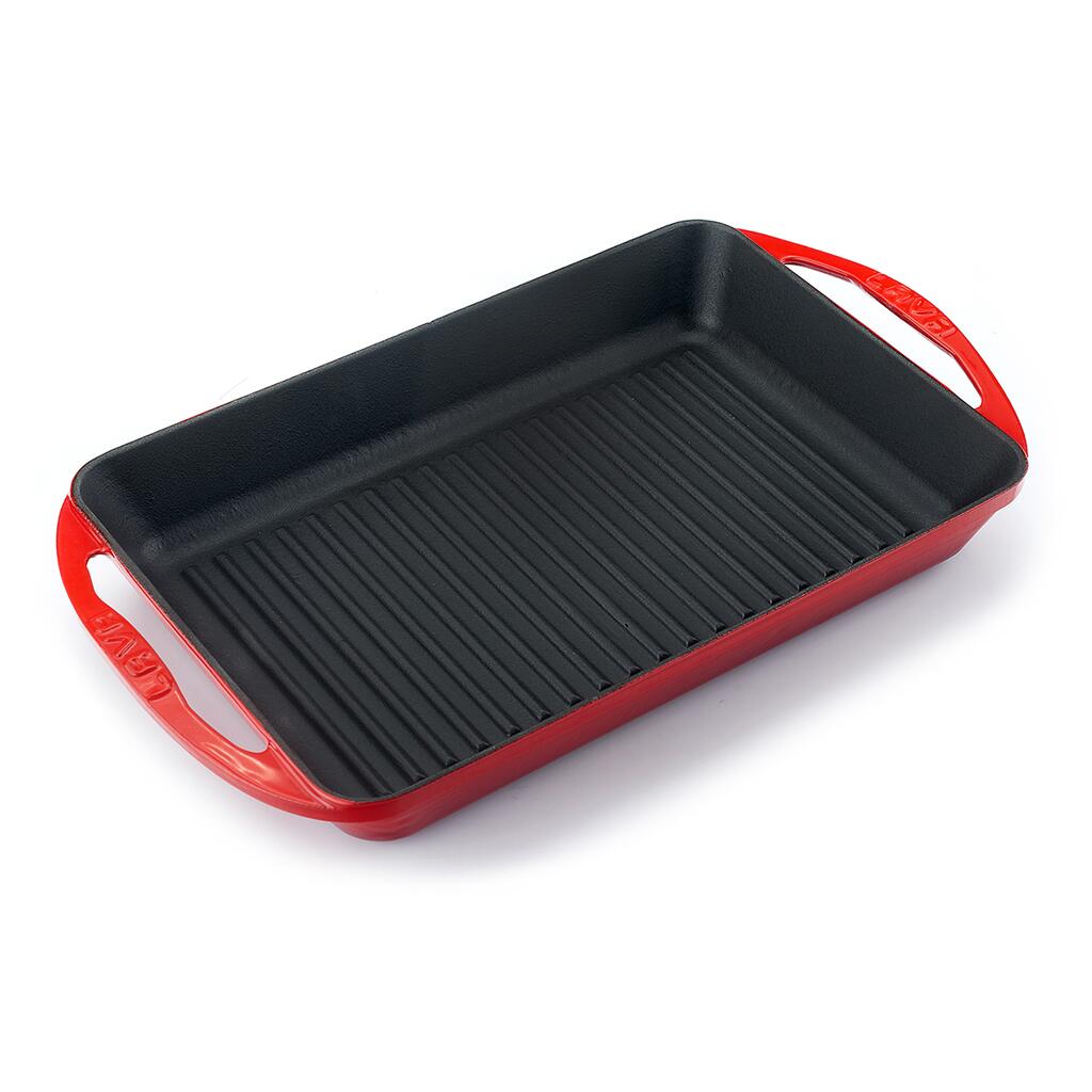 Сковорода-гриль Lava 32*22 см прямоуг. с 2-мя ручками красная чугун используется для приготовления широкого спектра блюд на предприятиях общественного питания и торговли, в пекарнях и кондитерских.
