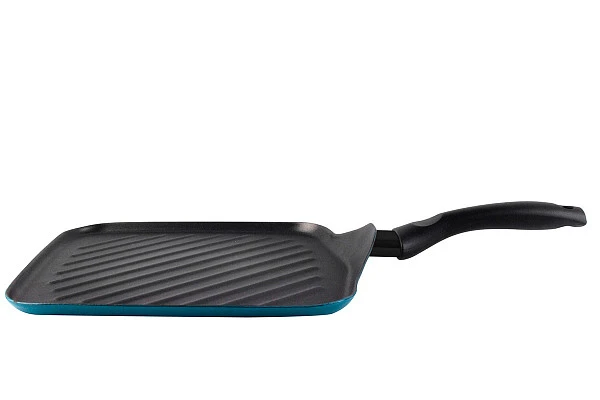 Эргономичная ручка сковороды-гриль из качественного бакелита удобно лежит в руке.
