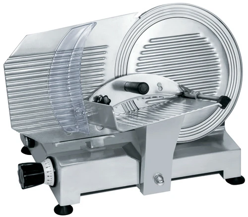 Изготовленная из алюминия, пригодного для использования с продуктами питания, имеет удобную каретку, которая легко двигается на подшипниках, лезвие, изготовленное из хромированной закаленной стали, мощный и тихий двигатель, устройство для заточки лезвия.