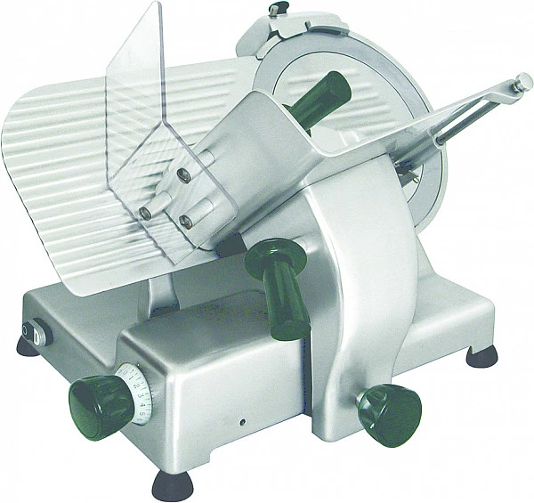 Профессиональный мотор с функцией принудительной вентиляции исключает возможность перегрева оборудования, а также делает его работу практически бесшумной. Слайсер оснащен фиксированным устройством для заточки ножа с двойным наждаком. Поддон для продуктов и перемычка для регулирования толщины среза выполнены из алюминия, отполированного путем анодирования, что обеспечивает их гигиеническую чистоту и защиту от коррозии.
