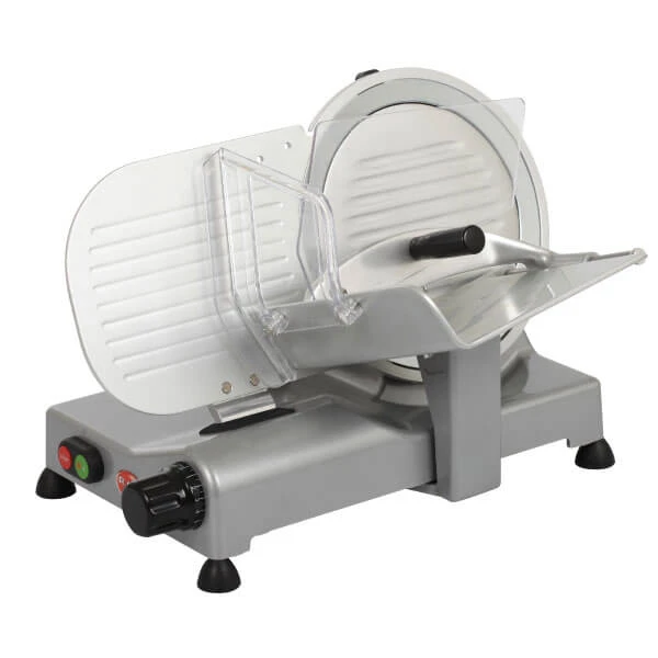 Слайсер полуавтоматический с наклонным ножом для нарезания гастрономических продуктов.