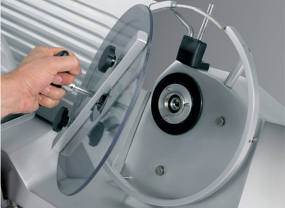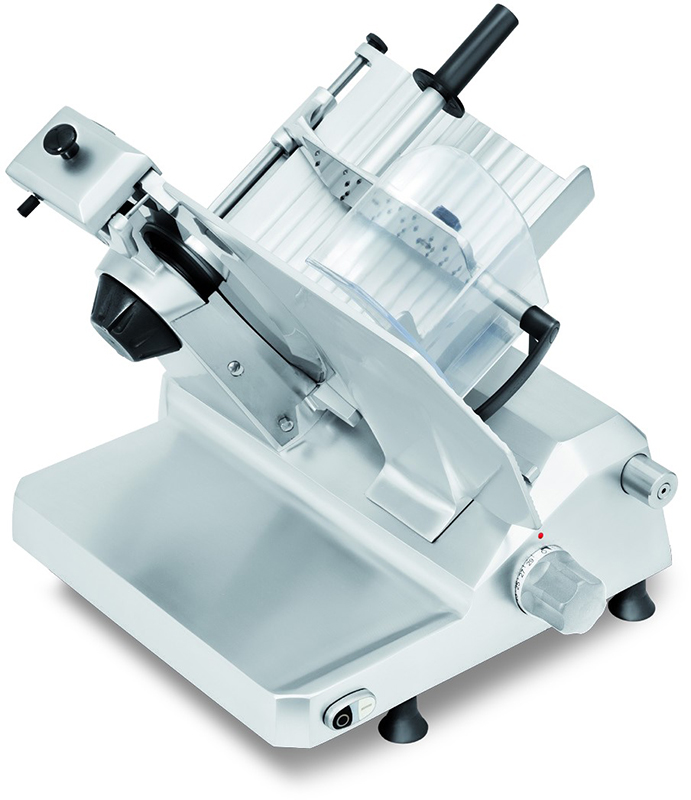 Слайсер Rheninghaus Mondial 350 с функцией охлаждения, уникальным дизайном, точной регулировкой толщины и гладким ходом каретки идеально подходит для эксплуатации в супермаркетах и кухнях больших ресторанов.