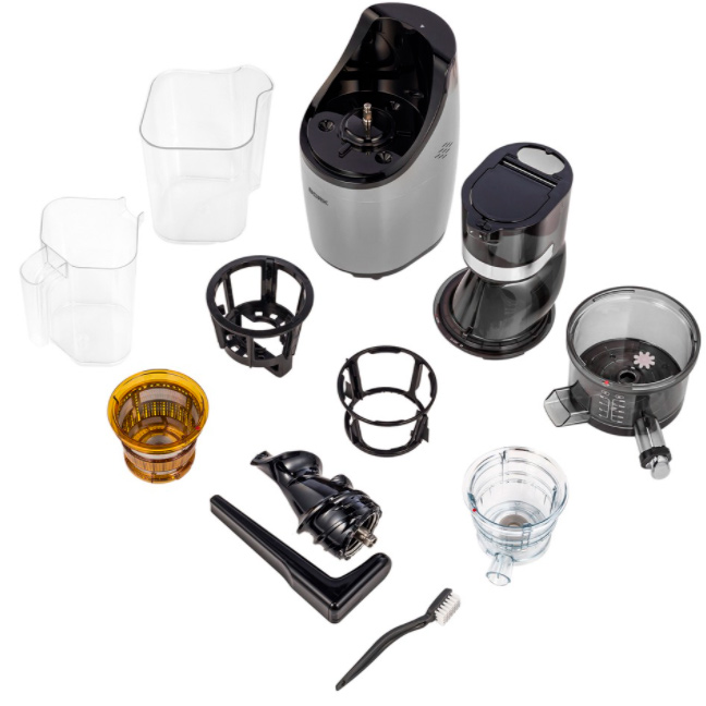 Сокопресс оснащен инновационным двигателем, благодаря чему мотор может работать без остановки в течение 24 часов, а сам прибор относится к мощным полупрофессиональным приборам