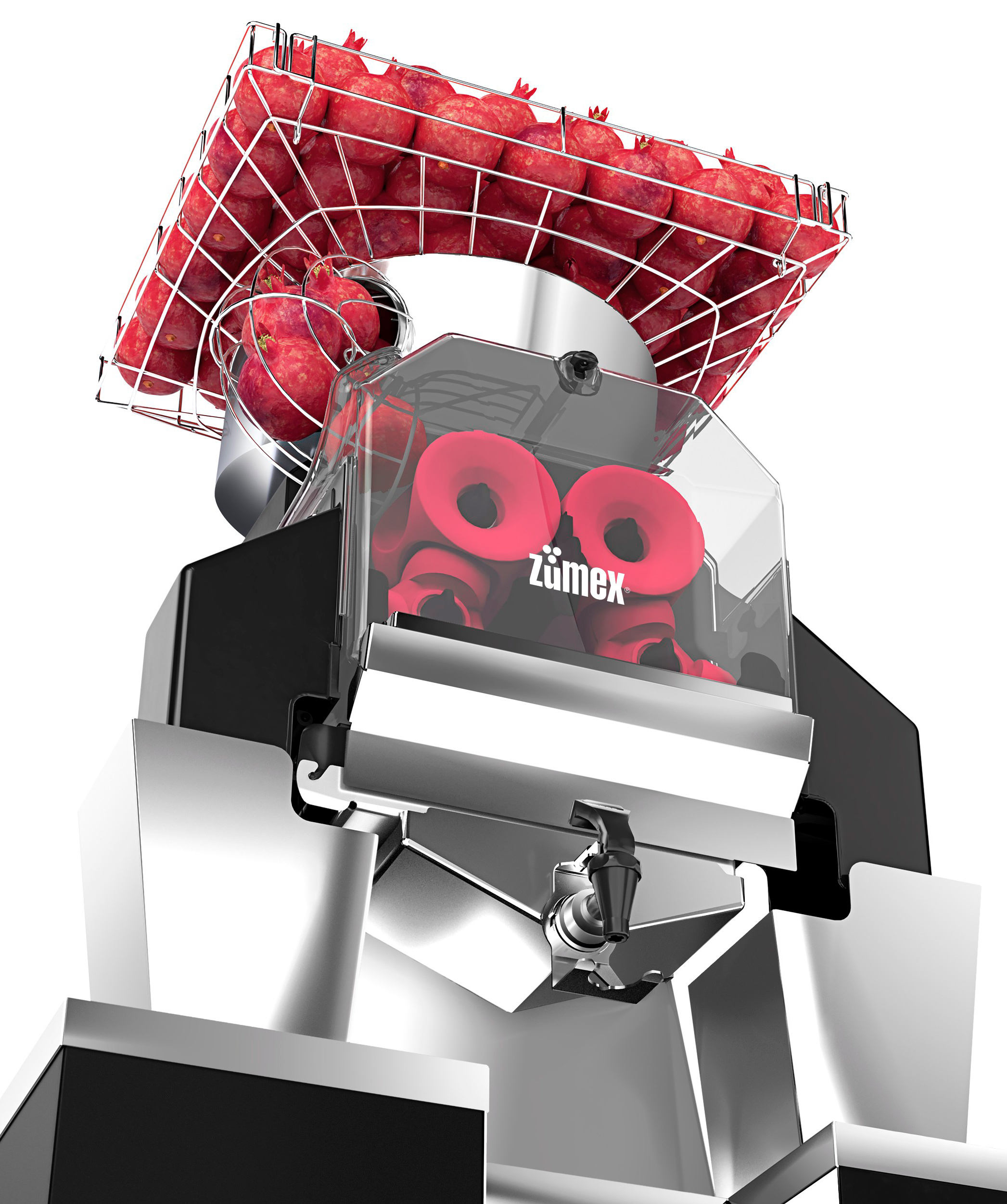 Первая высокопроизводительная соковыжималка, предназначенная для выжимания сока из любого вида граната. Это позволяет увеличить количество услуг без необходимости присутствия. До 100кг непрерывного производства с выходом 30 плодов в минуту.