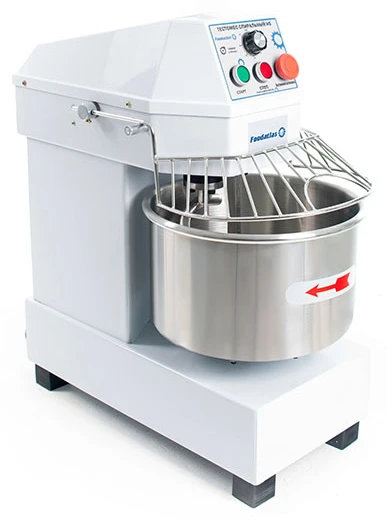 • Месильный орган спирального типа. Дополнительно в пространстве дежи установлен Рассекатель, для более полного замеса и насыщению кислородом тесто.