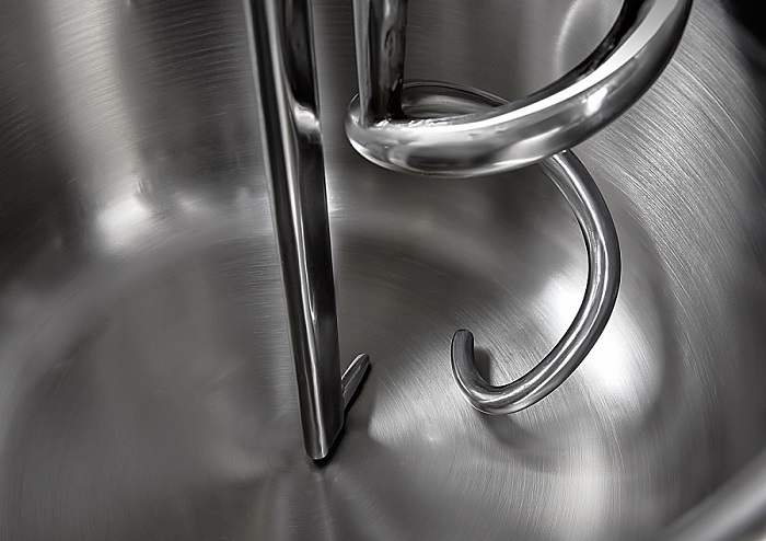 • Отсекатель и прилегание крюка с минимальным зазором ко дну дежи обеспечивают качественный промес теста