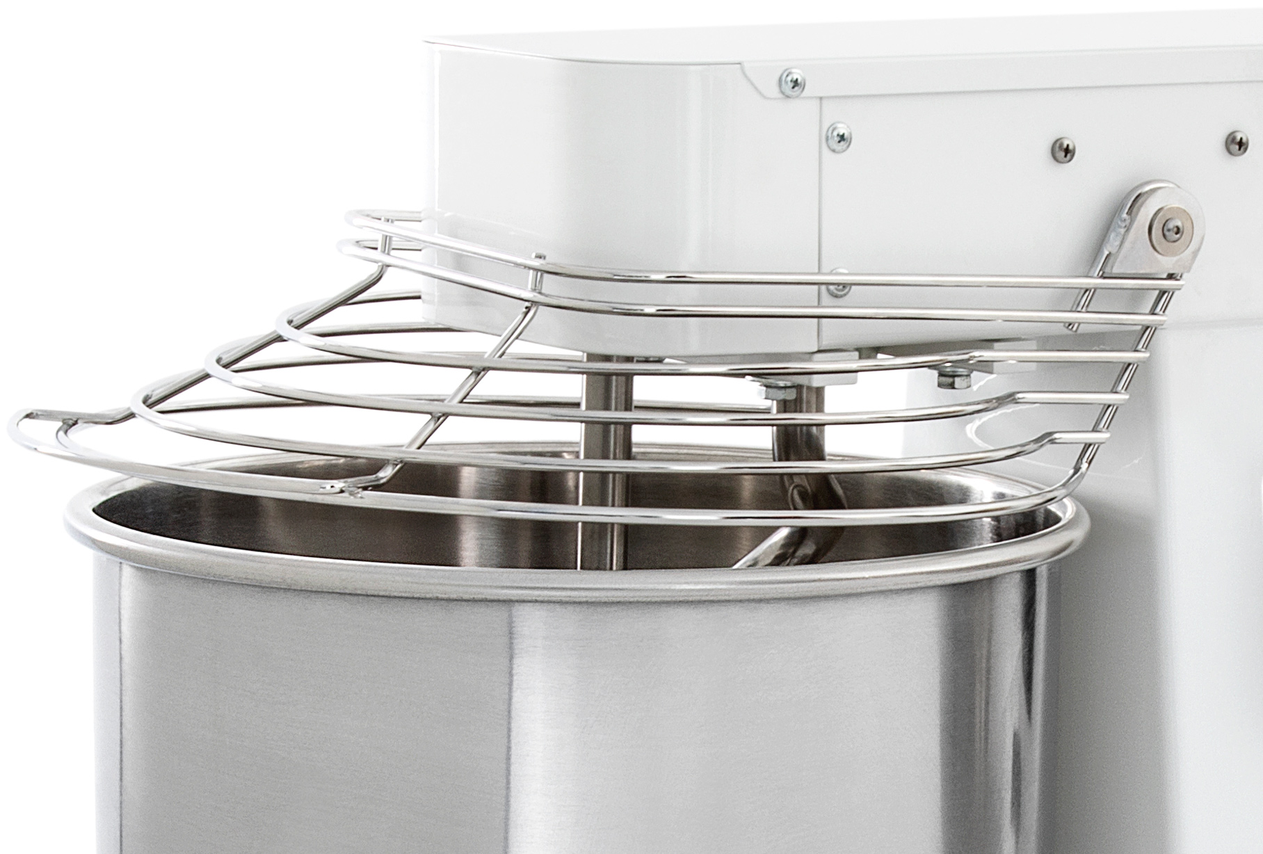 Перед началом работы повар покрывает дежу сетчатой крышкой, которая служит для защиты от случайного контакта с рабочими элементами спирального тестомеса.