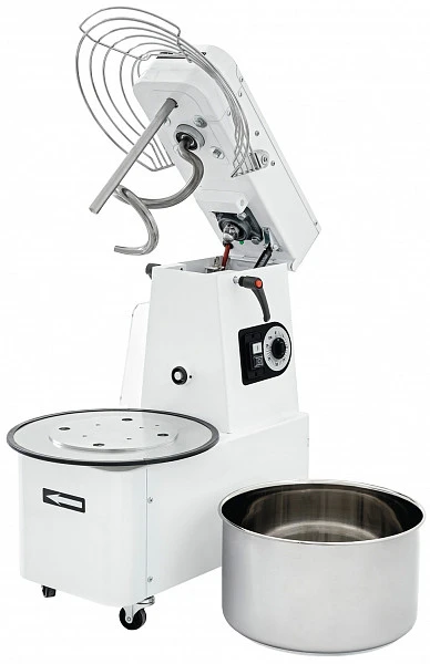 В корпусе спирального тестомеса находится двухскоростной двигатель, отвечающий за непрерывное вращение месильного органа.