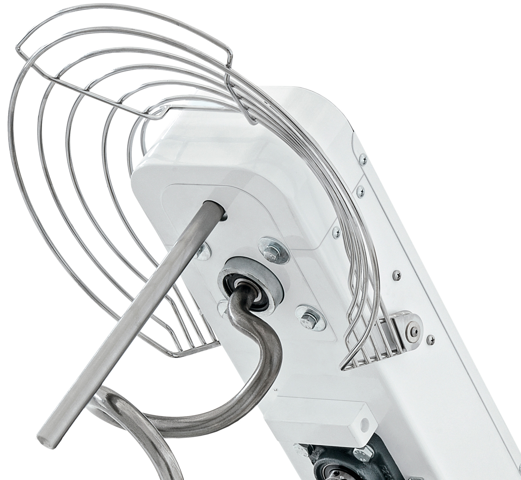 В корпусе спирального тестомеса находится двухскоростной двигатель, отвечающий за непрерывное вращение месильного органа.