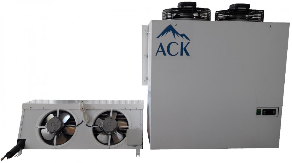 Сплит-система среднетемпературная АСК - Холод СС-21 - холодильная установка состоящая из 2-х блоков: компрессорно- конденсаторного, который размещается снаружи холодильной камеры, и воздухоохладителя внутри камеры.