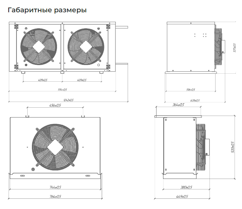 Внешний блок с установленным компрессором, микроканальным конденсатором, осевым вентилятором обдува конденсатора.