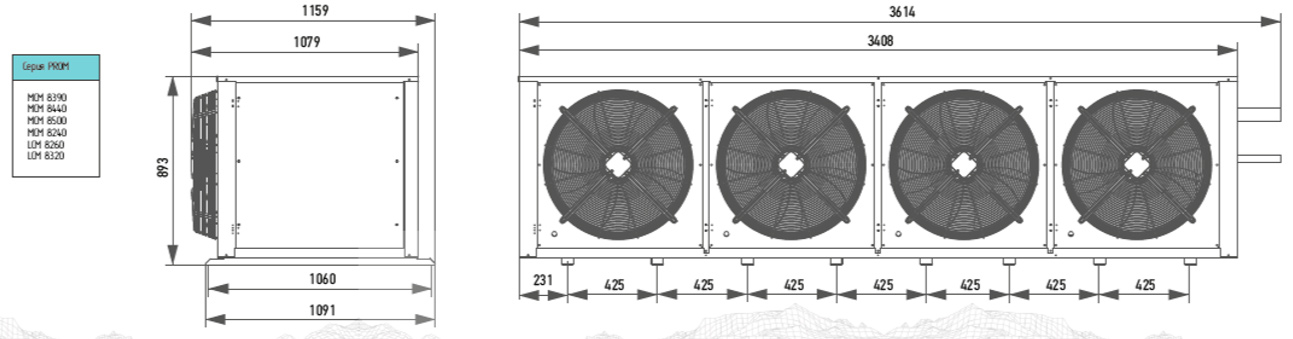 • Воздухоохладитель с корпусом из крашенной оцинкованной стали с установленными ТЭНами и вентиляторами