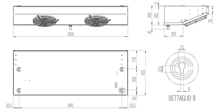 Самонесущий корпус из оцинкованной стали, покрытый порошковой краской. Быстросъемные лицевые панели для доступа к компонентам системы при обслуживании. Герметичные компрессоры с тепловой защитой двигателя. Материнская плата, программируемая в соответствии с различными требованиями пользователя. Автоматическая разморозка с программируемым запуском, продолжительностью и частотой.