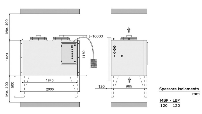 Самонесущий корпус из оцинкованной стали, покрытый порошковой краской, быстросъемные лицевые панели для доступа к системе. Герметичные или полугерметичные компрессоры с защитой двигателя термическим. Автоматическая разморозка с программируемым запуском, продолжительностью и частотой.