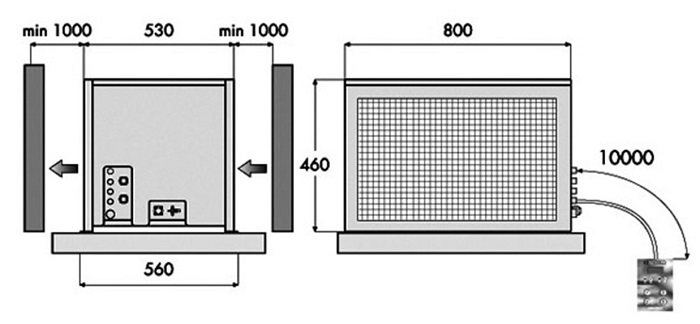 Самонесущий корпус из оцинкованной стали, покрытый порошковой краской, быстросъемные лицевые панели для доступа к системе. Герметичные или полугерметичные компрессоры с защитой двигателя термическим. Материнская плата, программируемая в соответствии с различными требованиями пользователя.