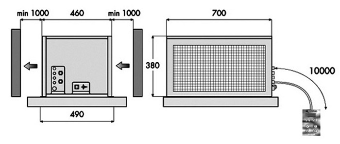 Самонесущий корпус из оцинкованной стали, покрытый порошковой краской, быстросъемные лицевые панели для доступа к системе. Герметичные или полугерметичные компрессоры с защитой двигателя термическим. Материнская плата, программируемая в соответствии с различными требованиями пользователя.