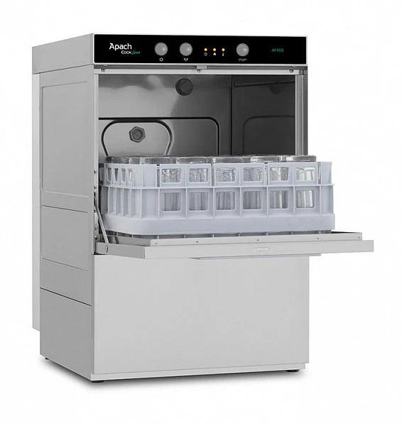 Стаканомоечная машина Apach AF400 без сливной помпы предназначена для мойки стаканов, чашек и столовых приборов на предприятиях общественного питания и торговли.