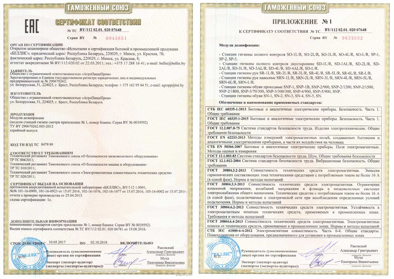 Оборудование для дезинфекции и очистки/Санпропускники для персонала