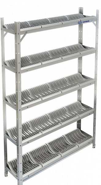 Полка стеллажа состоит из кассеты для тарелок и каркаса.