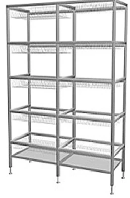 Стеллаж для сушки тарелок Проммаш ССК-1 используется на предприятиях общественного питания в моечных отделениях для сушки и хранения посуды и кухонного инвентаря.