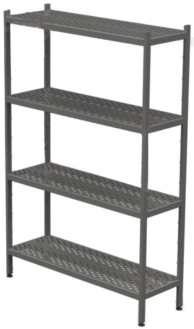 Перфорированные полки, усиленные ребрами жесткости, переставляемые по высоте (в комплекте 4шт)