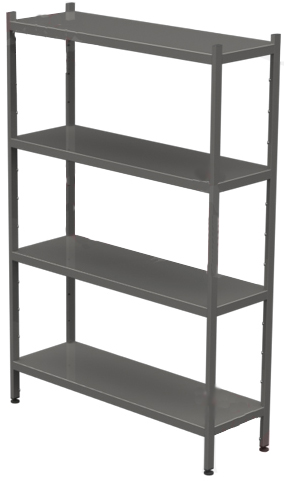 Сплошные полки, усиленные ребрами жесткости, переставляемые по высоте (в комплекте 4шт)