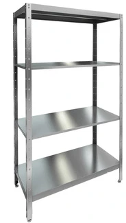 Стойки стеллажей из оцинкованного уголка 40х40мм имеют дополнительную отбортовку и комплектуются регулируемыми опорами.