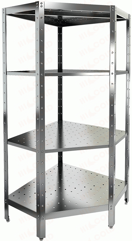 Стеллаж угловой Hicold НСКУВ-4/7 П используется для хранения кухонной утвари и принадлежностей, а также может быть использован для показа имеющихся товаров в магазинах, кафе или других торговых точках.