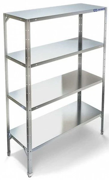 Стеллаж кухонный Kayman СК-221/2005 (212026). Стойки из нержавеющей стали AISI 430 (труба 40х40), полки сплошные из нержавеющей стали AISI 430. Используется в кухонных цехах для хранения сухих видов продуктов и кухонного инвентаря.