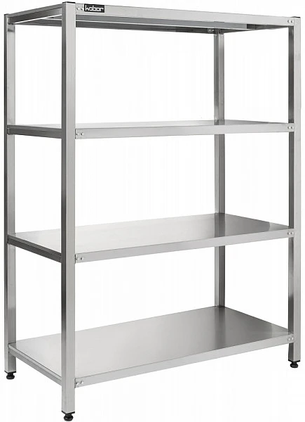 • Каркас стеллажа состоит из ножек, выполненных из нержавеющей квадратной трубы 40х40 мм.