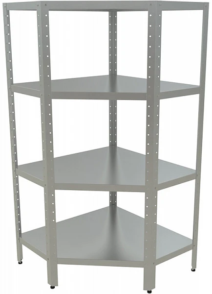 Каркас стеллажа состоит из ножек, выполненных из оцинкованного уголка