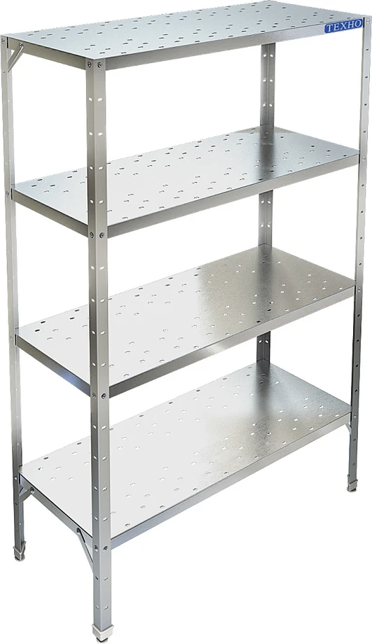 Стеллаж кухонный перфорированный Техно-ТТ СТР- 424/1306 предназначен для хранения посуды, различного инвентаря и сухих продуктов на предприятиях общественного питания и торговли. Модель оснащена регулируемыми по высоте полками и ножками, что позволяет компенсировать неровности пола.