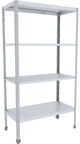 Ножки стеллажа снабжены регулирующими опорами, позволяющие компенсировать неровности пола при установке.