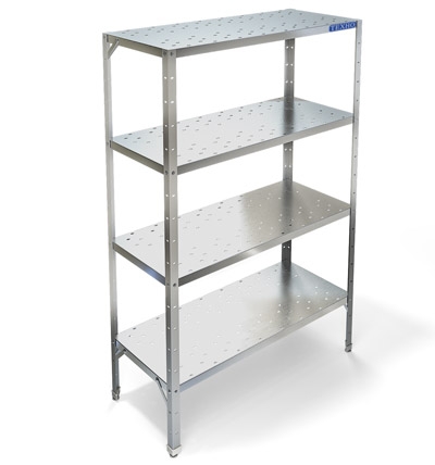 Разборный каркас выполнен из уголка 40х40 мм из нержавеющей стали AISI 430 толщиной 2 мм, перфорированные полки - из нержавеющей стали AISI 430 толщиной 0,8 мм.
