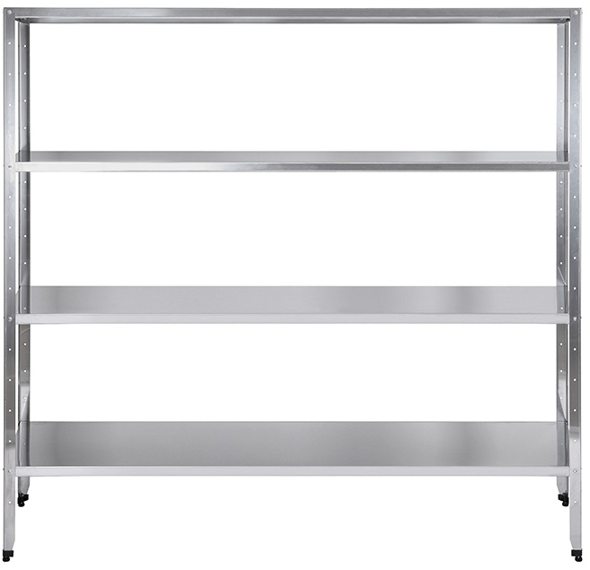 Универсальный кухонный стеллаж Люкссталь СР-1800х1500х400/4 нерж. используется в производственных помещениях, на предприятиях общественного питания и супермаркетах для хранения инвентаря и продуктов питания.