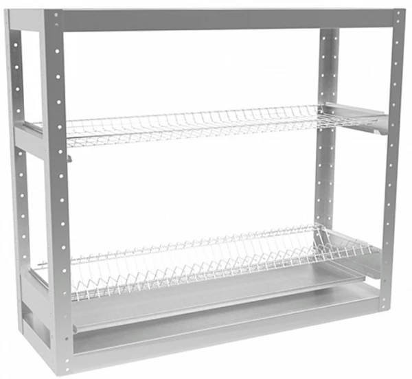 Дополнительно можно приобрести поддоны для установки под каждой полкой.