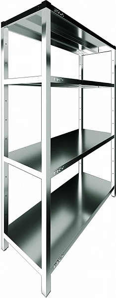 Стеллаж состоит из вертикальных опор и стальных полок без перфорации.
