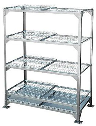 Стеллаж Проммаш СР-7 с полками для сушки посуды используются на предприятиях общественного питания в моечных отделениях для сушки и хранения посуды и кухонного инвентаря.
