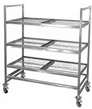 3 рабочих яруса, укомплектованных кассетами для тарелок, чашек, стаканов, ложек и т.д., а также их сушки в естественных условиях