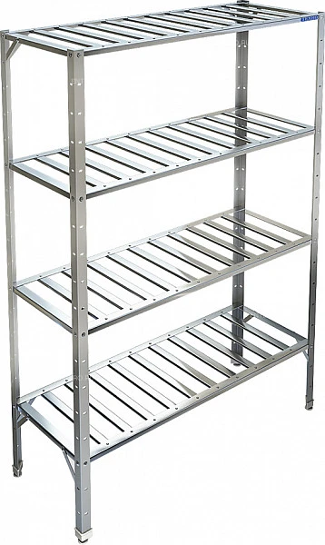 Стеллаж технологический разборный, стойки из уголка 40х40 нержавеющей стали марки AISI 304 толщиной 2мм. Четыре решетчатые полки из нержавеющей стали марки AISI 304 толщиной 0,8мм. Расстояние между полками регулируемое с шагом 50мм. Регулируемые опоры. Стеллаж поставляется в разобранном виде.